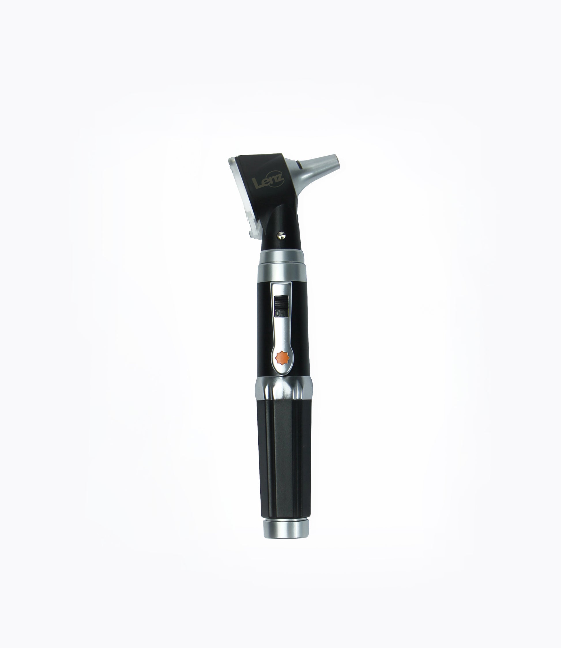 Con un otoscopio elaborado de la más alta calidad de fibra óptica, con una fuente de luz y un juego de especulos de distinto diámetro. Un lente magnificador que optimiza la visibilidad del tímpano y conduce auditivo mediante una iluminación homogénea de alta calidad.